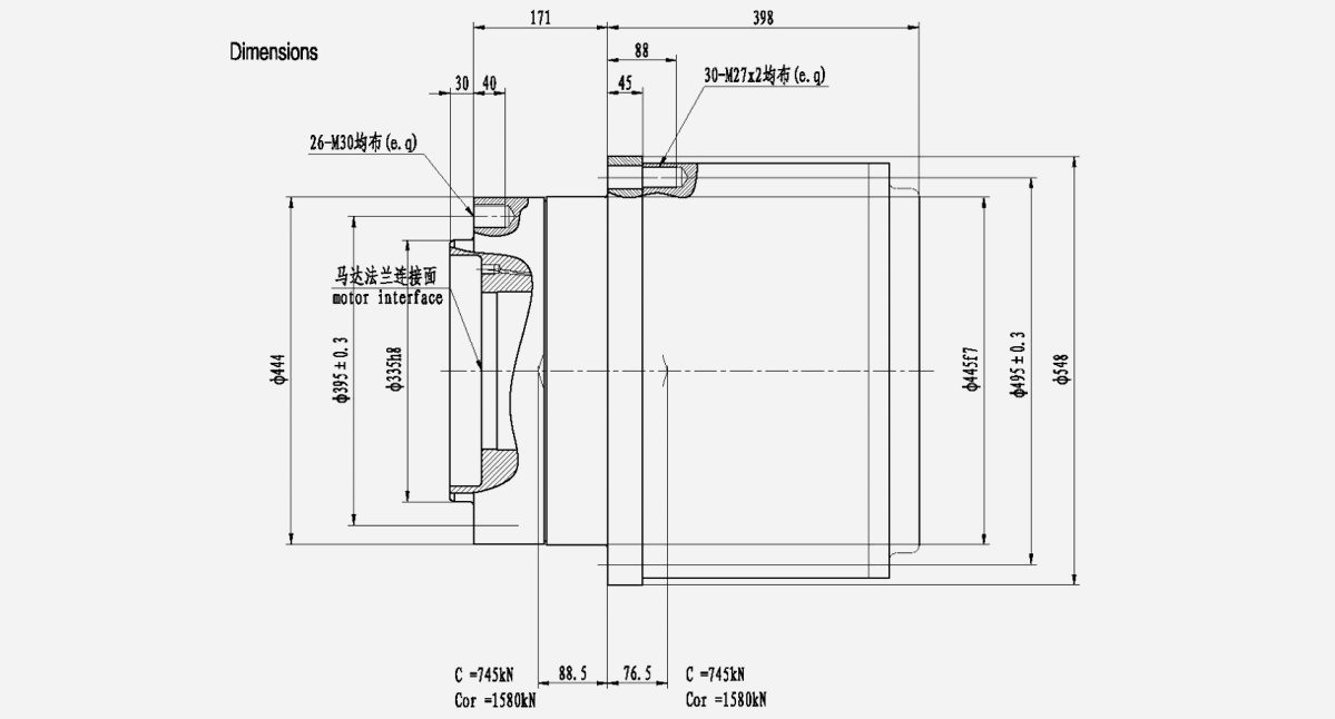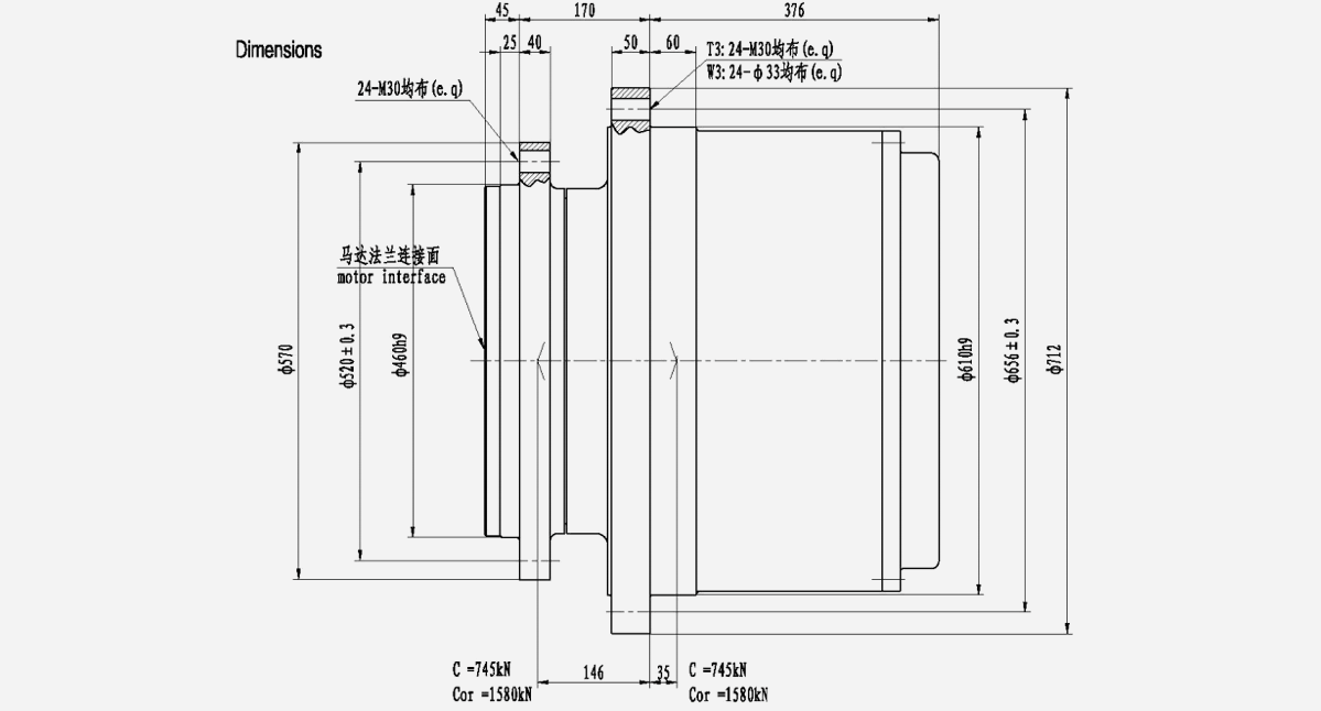 گیربکس سیارهای سری IGC با چرخش بدنه از یک گیربکس سیارهای و ترمز چند دیسکی نوع مرطوب تشکیل شده است. تجربه طراحی پیشرفته و فرآیندهای ساخت مدرن، ظرفیت حمل بار فوقالعاده را تضمین میکند
