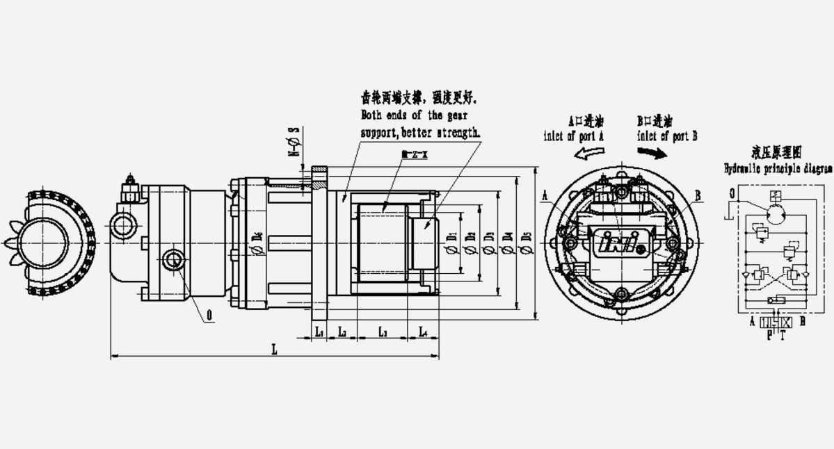 درایوهای چرخان هیدرولیک سری IYH با حقوق مالکیت معنوی مستقل ساخته شده اند. آنها عمدتاً از موتورهای هیدرولیک، ترمزهای هیدرولیک چند دیسکی، گیربکس های سیاره ای Ctype و توزیع کننده ها تشکیل شده اند. موتورهای هیدرولیک میتوانند